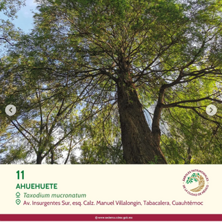 En total, se declararon 12 árboles como Patrimonio Natural de la Ciudad de México, que incluyen 10 ahuehuetes monumentales (ubicados en Cuauhtémoc, Azcapotzalco, Coyoacán, Miguel Hidalgo y Xochimilco), un laurel de la India en Benito Juárez y un fresno en Coyoacán.